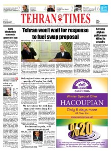 ယခင္က ျမန္မာ စစ္အစိုးရ ၏ အာေဘာ္သတင္းအခ်ိဳ ့ကို သာ ေဖာ္ျပေလ့ရွိသည့္ အီရန္ ႏိုင္ငံ တီဟီရန္ အေျခစိုက္ တီဟီရန္ တိုင္း၏ ယေန ့ထုတ္သတင္းစာတြင္ အနာဂတ္ မေသခ်ာ ေတာ့သည့္ ျမန္မာ စစ္အာဏာရွင္ ဆိုသည့္ ေခါင္းစဥ္ ျဖင့္ ေဖၚျပထားသည္။ထိုင္းႏိုင္ငံ အေျခစိုက္ ျမန္မာ အတိုက္အခံ အခ်ိဳ ့ႏွင့္ ေတြ ့ဆံုေမးျမန္းထားသည့္ AFP သတင္းဌာန၏ သတင္း ပုဒ္ ကို တီဟီရန္ တိုင္းမ္ သတင္းစာ၏အဂၤလိပ္ ဘာသာ ျဖင့္ ယေန ့ထုတ္ေ၀သည့္ သတင္းစာတြင္ ျပန္လည္ ေဖၚျပထားျခင္းျဖစ္သည္။