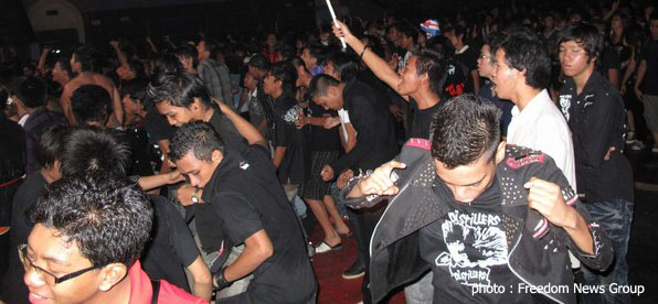 ပန္ခ့္ဂီတအဖြဲ ့တစ္ခုျဖစ္သည့္ Big Bagအဖြဲ ့ေဖ်ာ္ေျဖစဥ္ေတြ ့ရွိရသည့္ သူ ့ပရိတ္သတ္မ်ား
