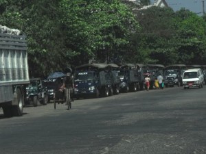 ယေန ့အင္းစိန္ေပါက္ေတာ၀ ရွိ LION CITY အထည္ခ်ဳပ္စက္ရံုမွ အလုပ္သမားေပါင္း ၂၀၀ ေက်ာ္ မွ ၎ တို ့ ၏ အလုပ္သမားအခြင့္အေရးမ်ားကိုေတာင္းဆိုဆႏၵျပခဲ့ၾကသည္ ။ အာဏာပိုင္မ်ားမွ စစ္ကားမ်ားကို ပံု တြင္ျမင္ေတြ ့ရ သည့္အတိုင္း မ်ားျပားစြာ ခ်ထားကာ လံုျခံဳေရးတင္းက်ပ္ထားခဲ့သည္ ။ စား၀တ္ေနေရးအက်ပ္အတည္းေၾကာင္း မိမိတို ့ အခြင့္အေရးမ်ားကို ျငိမ္းခ်မ္းစြာ ေတာင္းဆိုသည့္ အလုပ္သမားမ်ားကို ယခုကဲ့ သို ့ အင္အားျပကာ ႏွိပ္ကြပ္ရန္ ကို အာဏာပိုင္မ်ားဖက္မွ စီစဥ္ထားရွိေသာ္လည္း အလုပ္သမားဆႏၵ ျပမႈ ့ မ်ားမွာ တစထက္တစ ပို မိုက်ယ္ျပန္ ့လာ ခဲ့သည္ ။ ျပည္ေထာင္စုေန ့ မတိုင္မီရက္မ်ားကလဲ လိႈင္သာယာ စက္မႈ ့ ဇံုတြင္ရွိစက္ရံုမ်ားတြင္ လဲ ဆႏၵ ျပပြဲမ်ား အၾကီးအက်ယ္ ျဖစ္ပြားခဲ့ ျပီး ယခု ခ်ိန္ထိ အခ်ိဳ ့ စက္ရံုးမ်ား မွာ သေဘာတူညီခ်က္ မရ ေသးေၾကာင္း သိရ ပါ သည္။ ပိုမိုဆိုးရြားလာေသာ စား၀တ္ေနေရးအက်ပ္အတည္းေၾကာင့္ စက္ရံုအလုပ္သမား မ်ား ၏ ေတာင္းဆိုဆႏၵ ျပမႈ ့ မ်ားမွာ ဆက္လက္ျဖစ္ေပၚႏိုင္ဖြယ္ရွိေနေသးသည္ဟု သိရ ပါသည္ ။