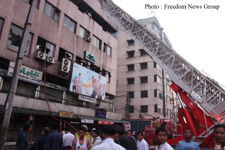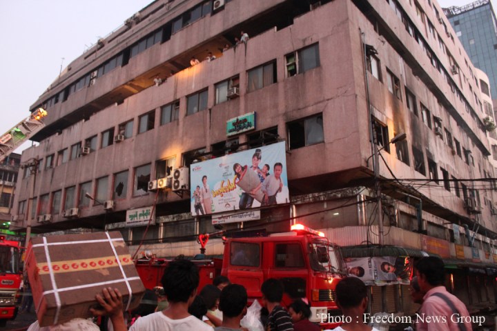 ေသာ သိမ္ႀကီးေစ်းဒီ ရံုတြင္ မီးေလာင္မႈ တစ္ရပ္ ျဖစ္ပြားခဲ့သည္။ စားေသာက္ ဆိုင္မွ စတင္ေလာင္