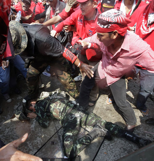 ယမန္ ေန ့ က အဓိကရုဏ္းတြင္ ထိုင္း စစ္သား သံုးဦးေသ ဆံုးၿပီး တင့္ကား ဆယ္စီး ႏွင့္ စစ္ကား ဆယ္စီးခန္ ့ဖ်က္စီးခံရသည္။