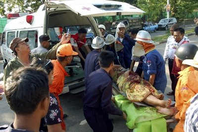 သတင်းဓာတ်ပုံ, Newsဗံုးေပါက္ကြဲ ၿပီးေနာက္ ရန္ကုန္ သႀကၤန္ ျမင္ကြင္း (အၾကတ္၊အတက္) အတက္ေန ့က ျပန္လည္ေရကစားေနစည့္ X20 မ႑ပ္ ဓာတ္ပံု-ရိုက္တာ သႀကၤန္အတက္ေန ့က X20 မ႑ပ္ေရွ ့တြင္ ေရကစားမႈျပဳလုပ္ေနစဥ္ ေစာင့္ၾကည့္ေနသည့္ တာ၀န္က် လံုၿခံဳေရးတပ္ဖြဲ ့၀င္မ်ား ဓာတ္ပံု-ေအပီ ယမန္ ေန ့က ဗံုးေပါက္ကြဲမႈ တြင္ ဒဏ္ရာရရွိသူမ်ားကို ေဆးရံုႀကီးသို ့အေရးေပၚသယ္ေဆာင္လာစဥ္(AP Photo/Myanmar News Agency) ဒဏ္ရာရရွိသူတစ္ဦးကိုသယ္ေဆာင္သြားစဥ္ (AP Photo/Myanmar News Agency) ရန္ကုန္ေဆးရံုႀကီးတာ၀န္က်ဆရာ၀န္တို ့ကဒဏ္ရာရရွိလာသည့္ လူနာမ်ားကို ကူညီေပးေနစဥ္ (AP Photo/Myanmar News Agency) သႀကၤန္ အၾကတ္ေန ့ကေရပက္ခံထြက္ေနသူမ်ား AP -Photo Rate this:လူမႈ မီဒီယာ ကြန္ယက္ တြင္ သတင္း ကို ျဖန္ ့ေ၀ရန္ Share on LinkedIn (Opens in new window) LinkedIn Share on Facebook (Opens in new window) Facebook Share on Pinterest (Opens in new window) Pinterest Email a link to a friend (Opens in new window) Email Share on X (Opens in new window) X Print (Opens in new window) Print Share on Tumblr (Opens in new window) Tumblr Like Loading... Related