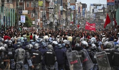ျပည္ပသတင္း, Newsနီေပါ ႏိုင္ငံတ၀ွမ္း အစိုးရျဖဳတ္ခ်ေရး ဆႏၵျပပြဲမ်ား စတင္ General strike grips Nepal ေမာ္၀ါဒီမ်ား ေတာင္းဆိုထားသည့္ အတိုင္း လက္ရွိ၀န္ႀကီးခ်ဳပ္ မာဒါးကူမား နီေပါ ရာထူးမွ ႏႈတ္ထြက္ေပးျခင္း မရွိသျဖင့္ နီေပါ ႏိုင္ငံ ခတၱမႏၵဴတြင္ တနဂၤေႏြ မနက္ကစၿပီး လူထုအံုၾကြမႈ မ်ား စတင္စဥ္ (AP Photo/Binod Joshi) ဆႏၵျပသူမ်ားက ႏွစ္ရက္ေျမာက္ေန ့အျဖစ္ ယေန ့တနလၤာေန ့တြင္ ဆက္လက္ဆႏၵျပၾကရာ ယခင္ ၀န္ႀကီးခ်ဳပ္ ေဟာင္း ေမာ္၀ါဒီေခါင္းေဆာင္ ဖုပါ ကမလ္ ဒါလ္ဟာ က ၀န္ႀကီးခ်ဳပ္ ႏႈတ္ ထြက္သည္ ထိ တိုက္ပြဲ ၀င္ မည္ ဟု ဆိုသည္ (AP Photo/Altaf Qadri) Rate this:လူမႈ မီဒီယာ ကြန္ယက္ တြင္ သတင္း ကို ျဖန္ ့ေ၀ရန္ Share on LinkedIn (Opens in new window) LinkedIn Share on Facebook (Opens in new window) Facebook Share on Pinterest (Opens in new window) Pinterest Email a link to a friend (Opens in new window) Email Share on X (Opens in new window) X Print (Opens in new window) Print Share on Tumblr (Opens in new window) Tumblr Like Loading... Related