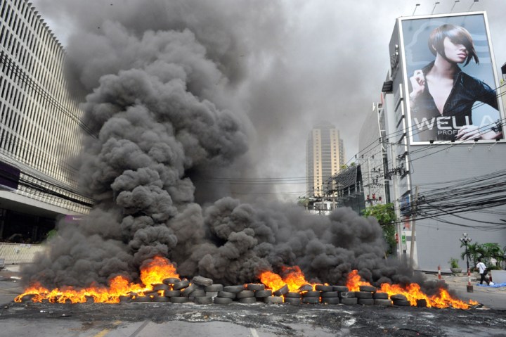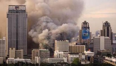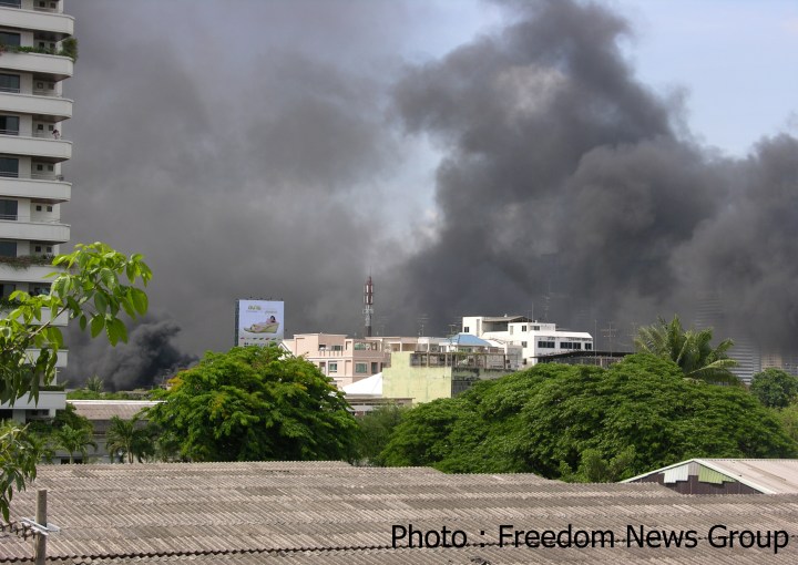ထိုင္းစစ္တပ္ ရဲ ့တိုက္ခိုက္မႈ ေတြ ကို ျပန္လည္ ခုခံရင္း အနီ၀တ္ UDD အင္အားစုေတြ မီးရိႈခဲ့တဲ့ ဘန္ေကာက္