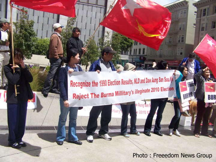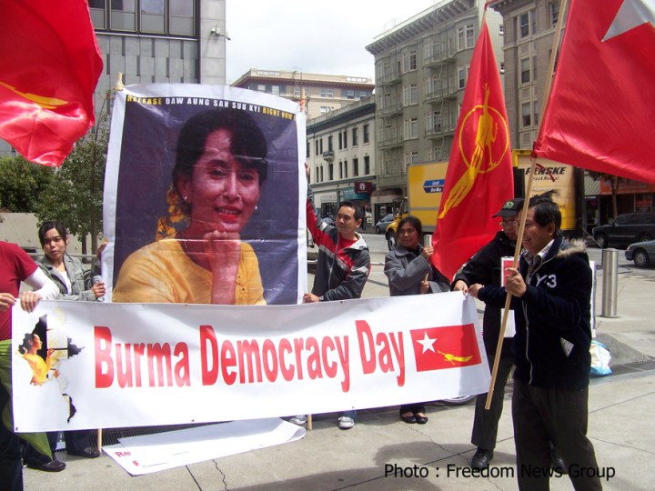 ယေန ့က်င္းပသည့္ ဆန္ဖရန္စစၥကို ၿမိဳ ့ရွိ ဗမာ့ ဒီမိုကေရ စီေန ့အခမ္းအနား တြင္ ဆန္ဖရန္ ေရာက္ ျမန္မာ မ်ားက ေဒၚေအာင္ဆန္းစုၾကည္လြတ္ေျမာက္ေရး အတြက္ ပါ၀င္ ဆႏၵျပခဲ့ၾကသည္။ဆန္ဖရန္စၥကို ၿမိဳ ့ေတာ္၀န္ လည္း ထို အခမ္းအနား သို ့တက္ေရာက္ေၾကာင္း ႏိုင္ငံေရးအက်ဥ္းသား ေဟာင္း တစ္ဦး ျဖစ္ သူ ကိုခင္ေမာင္ ၀င္းက Freedom News Group သုိ ့ေျပာသည္။