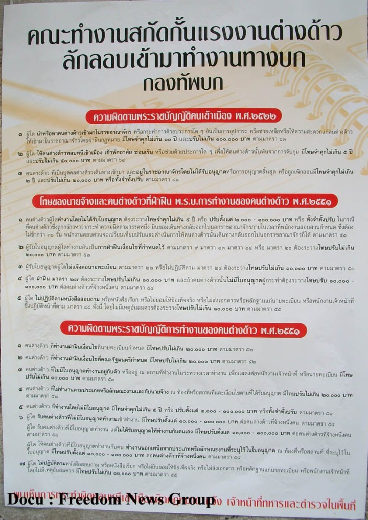 တရားမ၀င္ အလုပ္သမားမ်ားလကၡံထားေသာ ထိုင္းအလုပ္ရွင္မ်ားကို ျပင္းထန္ေသာ ေငြဒါဏ္၊ေထာင္ဒါဏ္မ်ားခ်မွတ္