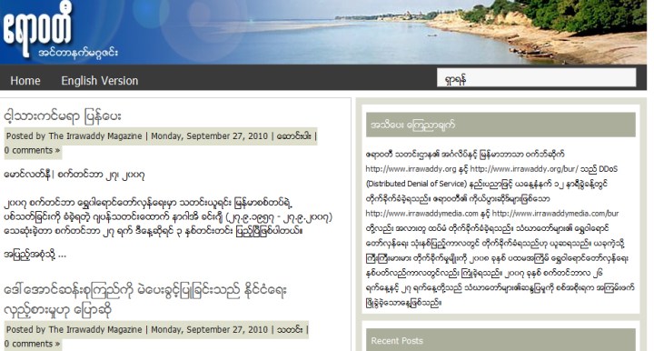 ဟိန္းခိုင္ထြန္း၊ကိုဦး ၊ ၊ထိုင္း ႏိုင္ငံခ်င္းမိုင္ ၿမိဳ ့တြင္ အေျခစိုက္ေသာ ျမန္မာ သတင္းဌာန တစ္ခုျဖစ္သည့္ ဧရာ၀တီ သတင္းဌာန ႏွင့္ ေနာ္ေ၀ ႏိုင္ငံအေျခစိုက္ ဒီမိုကရက္တစ္ ျမန္မာ့ အသံ သတင္းဌာန အင္တာနက္စာမ်က္ႏွာမ်ားမွာDDoS စနစ္ျဖင့္ တုိက္ခိုက္မႈ ခံရသည္ ဟု သတင္းရရွိသည္။