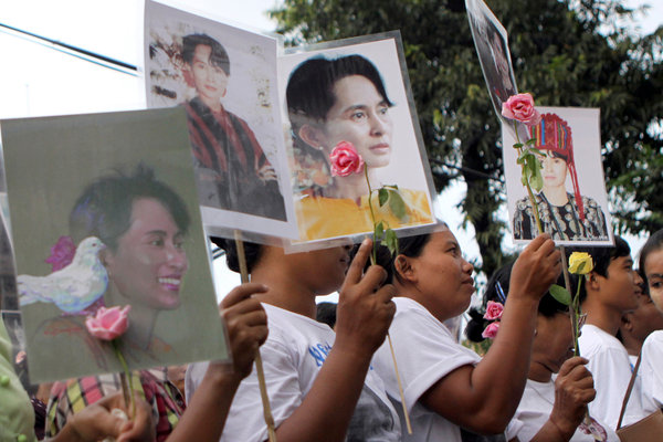 ျမန္မာ့ ဒီမိုကေရစီ ေခါင္းေဆာင္ ေဒၚေအာင္ဆန္းစုၾကည္ ကို လာေရာက္ ႀကိဳဆိုသူမ်ား မွာ