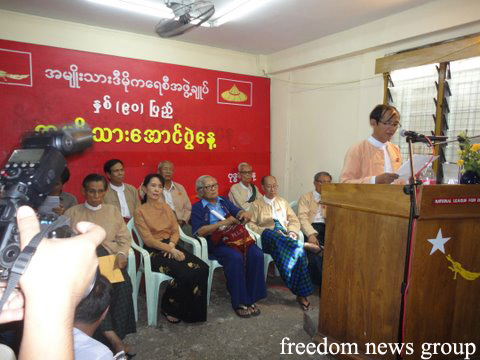 အမ်ိဳးသား ေအာင္ပြဲ ေန ့အခမ္းအနား ကို ရန္ကုန္ ၿမိဳ ့ရွိ အမ်ိဳးသားဒီမိုကေရစီ အဖြဲ ့ခ်ဳပ္ရံုးတြင္