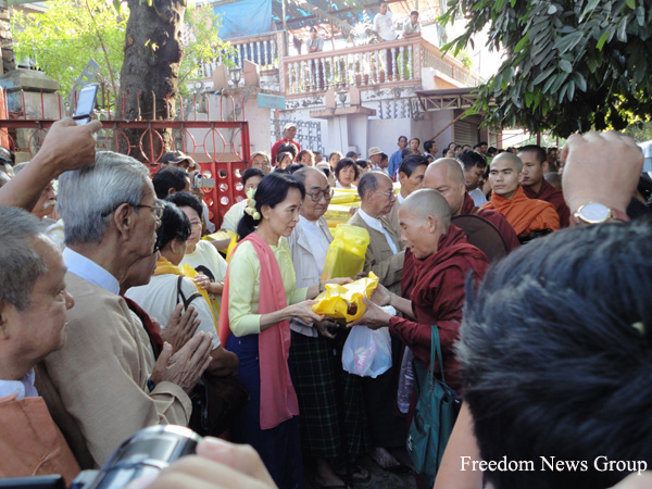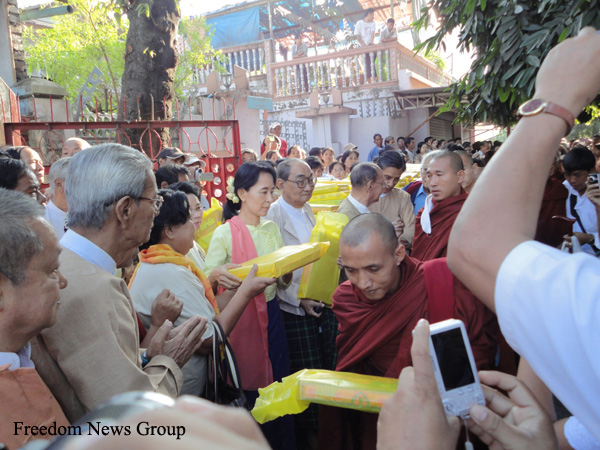 ေဒၚေအာင္ဆန္းစုၾကည္ က သံဃာေတာ္မ်ား ႏွင့္ ယေန ့သကၤန္ ကပ္လႈ ပူေဇာ္ရာ ရန္ကုန္တိုင္း