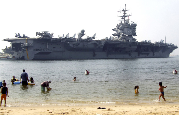 အေမရိကန္ တိုက္ေလယာဥ္မ်ား အား ေျမထဲ ပင္ လယ္ အတြင္း ရွိ သေဘၤာမ်ားက ဒံုးလက္နက္