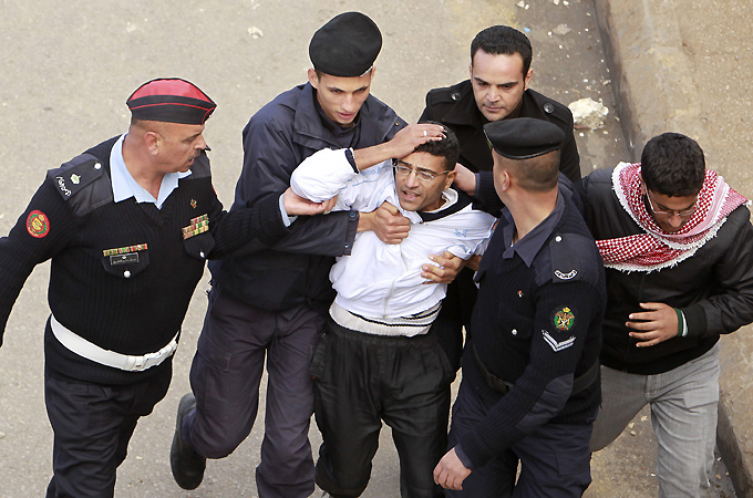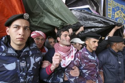 ရဲတပ္ ဖြဲ ့၀င္မ်ား က ဆႏၵျပသူမ်ား ကို အကာအကြယ္ေပးထားသည္။ ယေန ့ေဂ်ာ္ဒန္ ဆႏၵျပမႈ