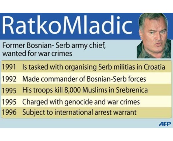 ယမန္ႏွစ္ ၾသဂုတ္လ က ေဘာစနီးယား အစိုးရက မလာဒစ္ ကို ဖမ္းမိႏိုင္ေရး အတြက္ ဆုေငြ တစ္္ သန္း