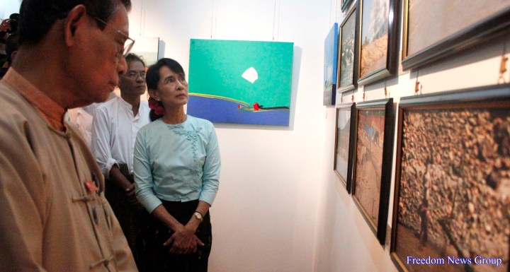 ျမန္မာ့ဒီမိုကေရစီ ေခါင္းေဆာင္ ေဒၚေအာင္ဆန္းစုၾကည္ က ဓာတ္ပံု ႏွင့္ ပန္းခ်ီ ျပပြဲ တြင္ အမွတ္တရ
