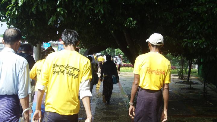 ဒဂံုၿမိဳ ့သစ္ မွ ခ်ီတက္ လာသည့္ ေဒၚေနာ္အံုးလွ ဦးေဆာင္ သည့္ အဖြဲ ့သည္ ရန္ကုန္ ၿမိဳ ့