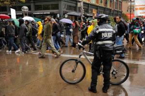 Several hundred Occupy Denver protesters marched to Denver’s Federal Reserve branch on the 16th Street Mall in downtown Denver then back to their encampment in the park adjacent to the Colorado State Capitol Saturday afternoon, October 8, 2011. With another march scheduled for next Saturday the event is becoming a regular fixture of the local anti-greed, anti-business movement in support of the Occupy Wall Street protest in New York City. Karl Gehring/The Denver Post