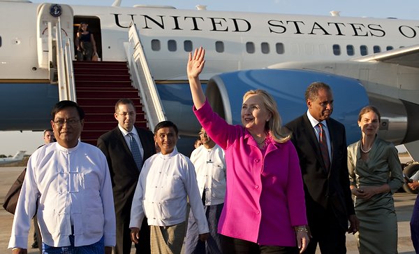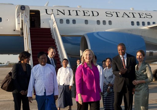 အေမရိကန္ႏုိင္ငံျခားေရး၀န္ႀကီး ဟီလာရီ ကလင္တန္ ႏွင့္ အဖြဲ ့ သည္ ယေန ့ ျမန္မာ စံေတာ္ ခ်ိန္