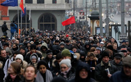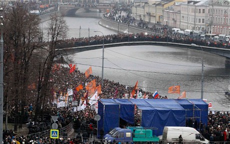 ဆႏၵျပ သူေတြ ဟာ ေမာ္စကို တစ္ၿမိဳ ့ထဲ မွာပဲ သံုးေသာင္းေက်ာ္ေလာက္ရွိတယ္လို ့သတင္း