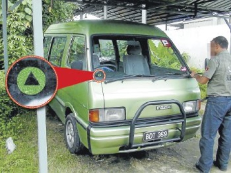 လိုက္တာနဲ႔ က်ေနာ္တို႔ကားရဲ႕ေ႐ွ႕မွန္မွာကပ္ဖို႔ စတစ္ကာ အစိမ္းေလးတခုေပးတယ္။