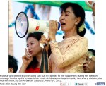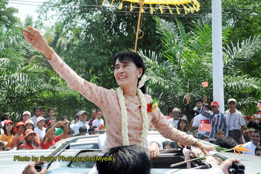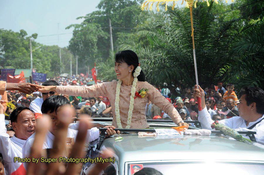 ေဟာ ေျပာပြဲ အတြက္ သြား ေရာက္ အမ်ိဳးသား ဒီမိုကေရစီအဖြဲ႔ခ်ဳပ္ ဥကၠ႒ ေဒၚေအာင္ဆန္းစုၾကည္
