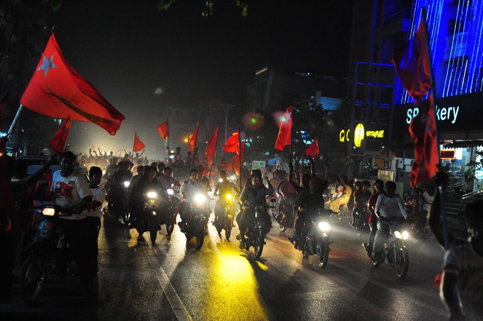 အမ်ိဳးသား ဒီမိုကေရစီ အဖြဲ ့ခ်ဳပ္ ၏ ေရြးေကာက္ ပြဲ ေအာင္ ႏိုင္မႈ ကို မႏၱေလး ၿမိဳ ့ ရွိ ေဒသခံ လူငယ္
