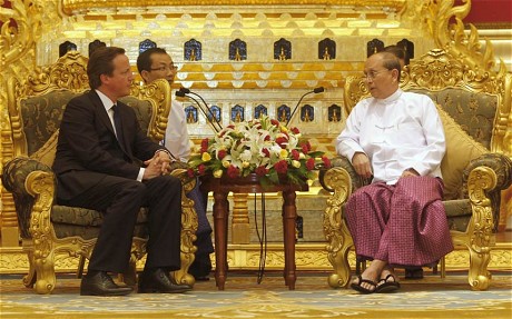 ၿဗိတိသွ် ၀န္ ႀကီး ခ်ဳပ္ သည္ ျမန္မာ အစိုးရ သမၼတ ဦးသိန္းစိန္ ႏွင့္ ေတြ ့ဆံု ခ်ိန္ တြင္ ႏိုင္ငံ တကာ
