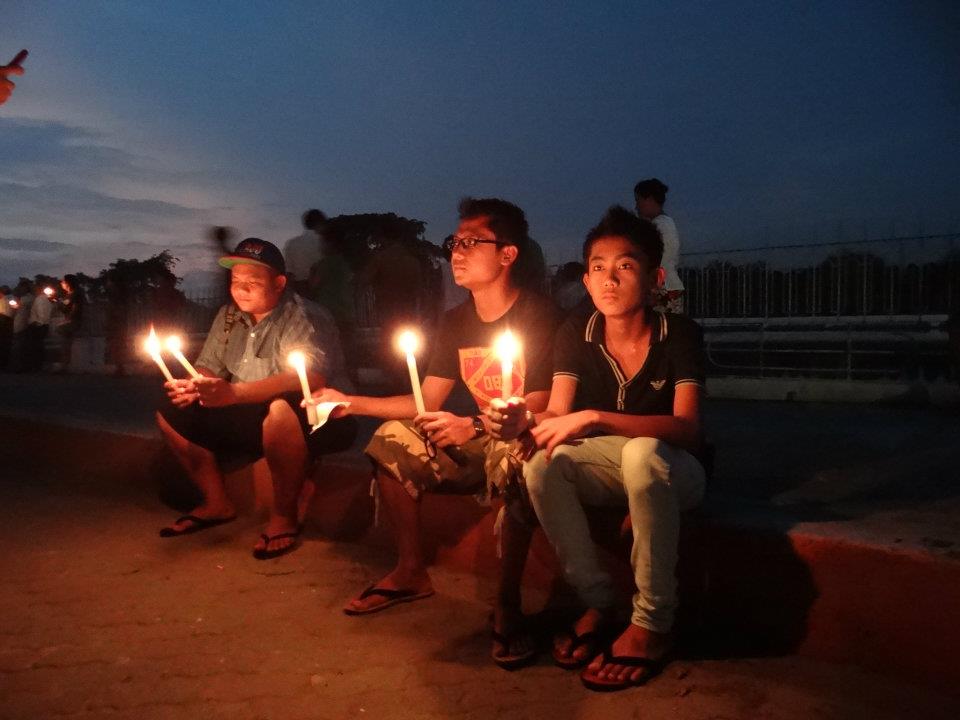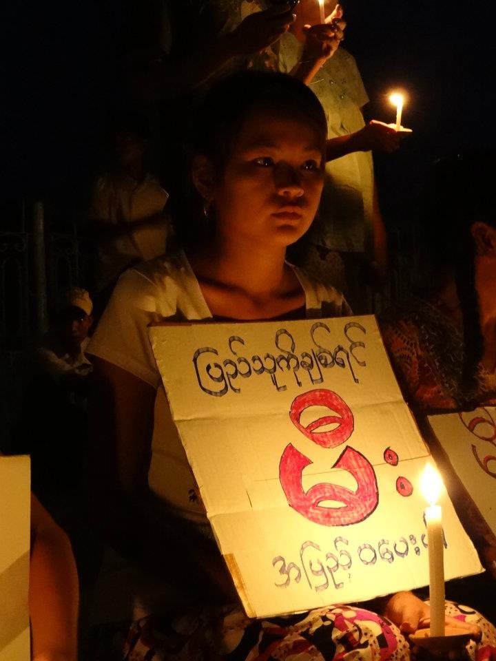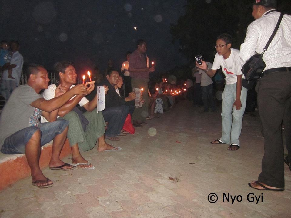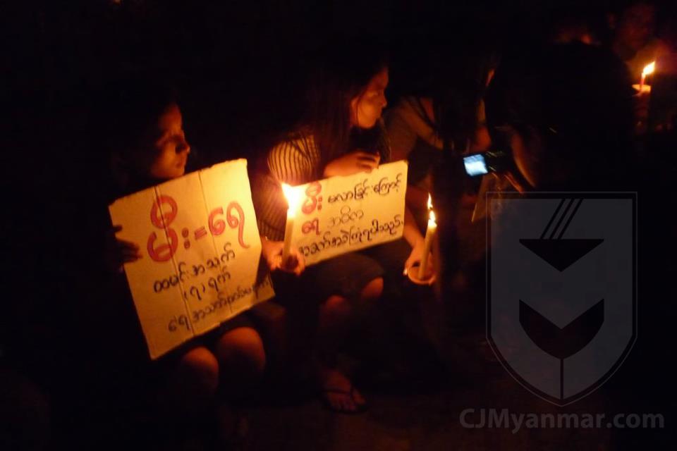 ၇၈ လမ္း က်ံဳး အနီး ရွိ မႏၱေလး တိုင္း လွ်ပ္စစ္ ရံုးခ်ဳပ္ ေရွ ့ တြင္ ဆႏၵျပ သူ မ်ား က ဖေယာင္း တိုင္