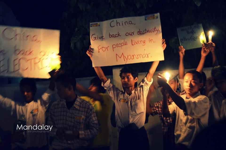 ဆႏၵျပ သူ အခ်ိဳ ့ က တရုတ္ ႏိုင္ငံ အေနျဖင့္ ျမန္မာ ႏိုင္ငံ မွ လွ်ပ္ စစ္မီး ကို ၀ယ္ယူထား ရွိ မႈ ကို ရပ္ တန္ ့