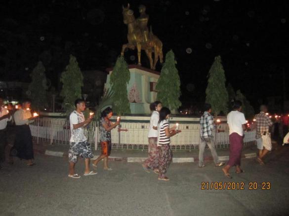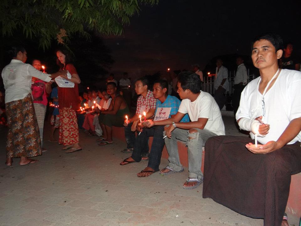 ျပည္ၿမိဳ ့တြင္ လည္း ယေန ့ ည ၈ နာရီ ခန္ ့က ဖေယာင္းတိုင္မီး ထြန္းညိႈ ဆႏၵျပ မႈ ျဖစ္ပြား ခဲ့သည္။