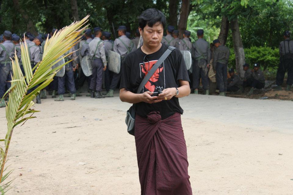 မ်ား ရွိ ေန သည္ ဆႏၵျပ ခ်ီတက္ ပြဲ ကို ရန္ ကုန္ မွ သြား ေရာက္ သတင္း ရယူသည့္ ဂ်ာနယ္လစ္