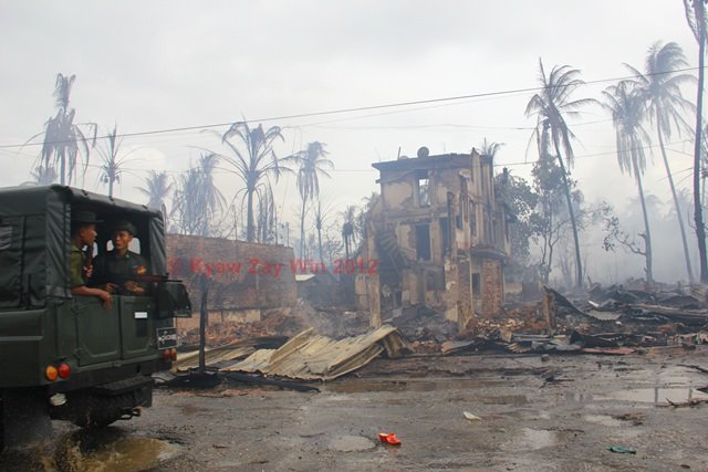 စစ္ေတြ ၿမိဳ ့ တြင္ အိမ္ အလံုး ေပါင္း ၂၀၀၀ နီးပါး မီးရိႈ ့ဖ်က္ဆီး ခံရ မႈ ေၾကာင့္ ခိုလႈံ ရာ မဲ့ ဒုကၡသည္