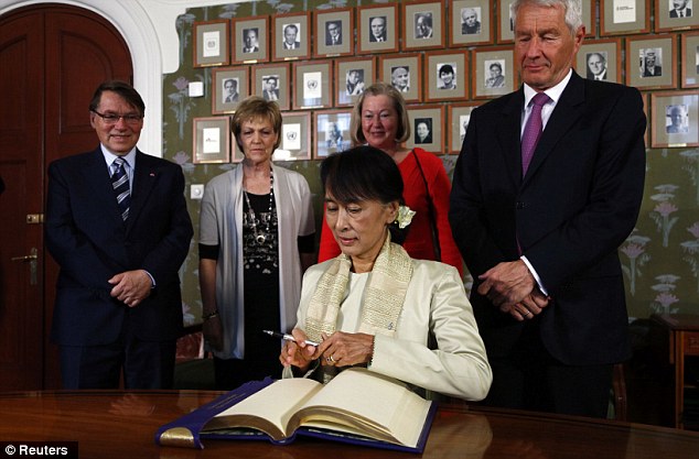 ေဒၚေအာင္ဆန္းစုၾကည္ သည္ ႏိုဘဲလ္ ဆုရွင္ မ်ား အမွတ္ တရ လက္မွတ္ စာ အုပ္ ႏွင့္