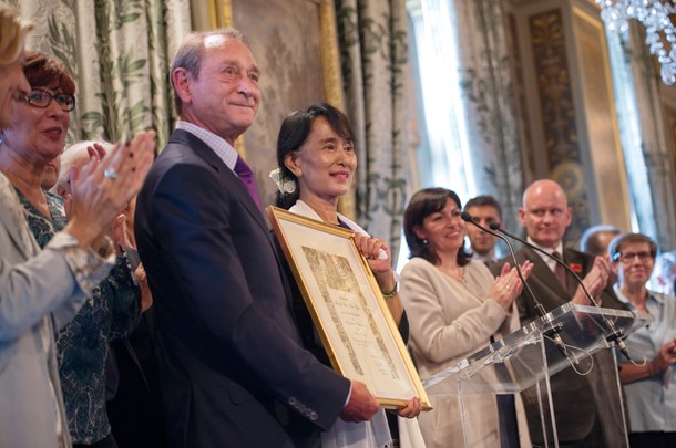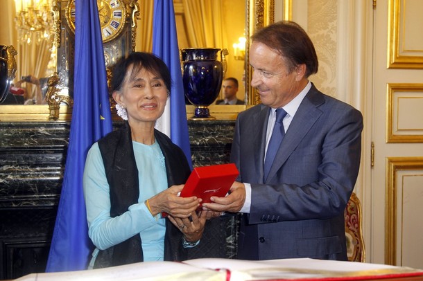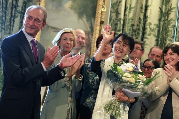 ျမန္မာ ဒီမိုကေရစီ ေခါင္းေဆာင္ ေဒၚေအာင္ဆန္းစုၾကည္ ဟာ ျပင္သစ္ ႏိုင္ငံ မွာ ေရာက္ ရွိ ေနစဥ္