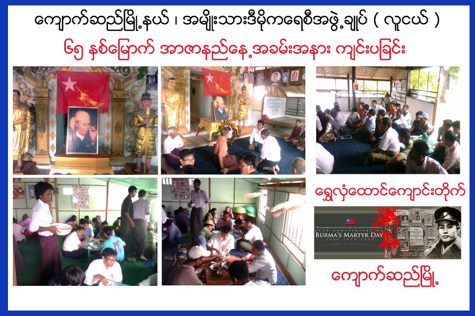 မံုရြာ ၿမိဳ ့၊ ေက်ာက္ဆည္ ၿမိဳ ့ႏွင့္ ကရင္ ျပည္နယ္ ျမ၀တီ ၿမိဳ ့ တို ့ တြင္ အာဇာနည္ ေန ့ အခမ္း