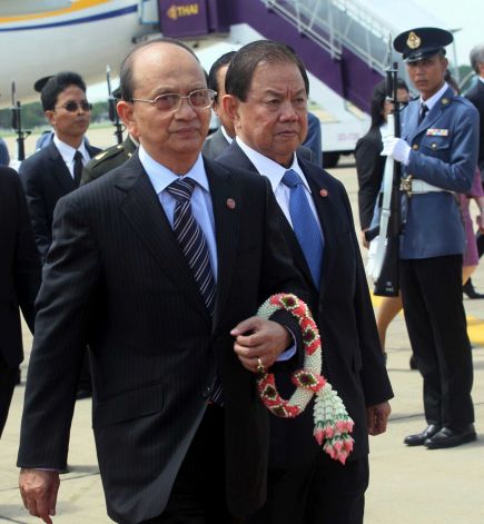 မွာ ေရာက္ ရွိလာ တဲ့ သမၼတ ဦးသိန္းစိန္ ကို ထိုင္း ဒု၀န္ႀကီးခ်ဳပ္ နဲ ့ အဖြဲ ့ က ႀကိဳ ဆို ခဲ့