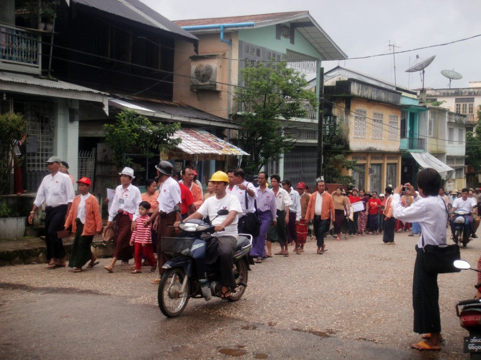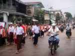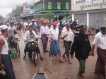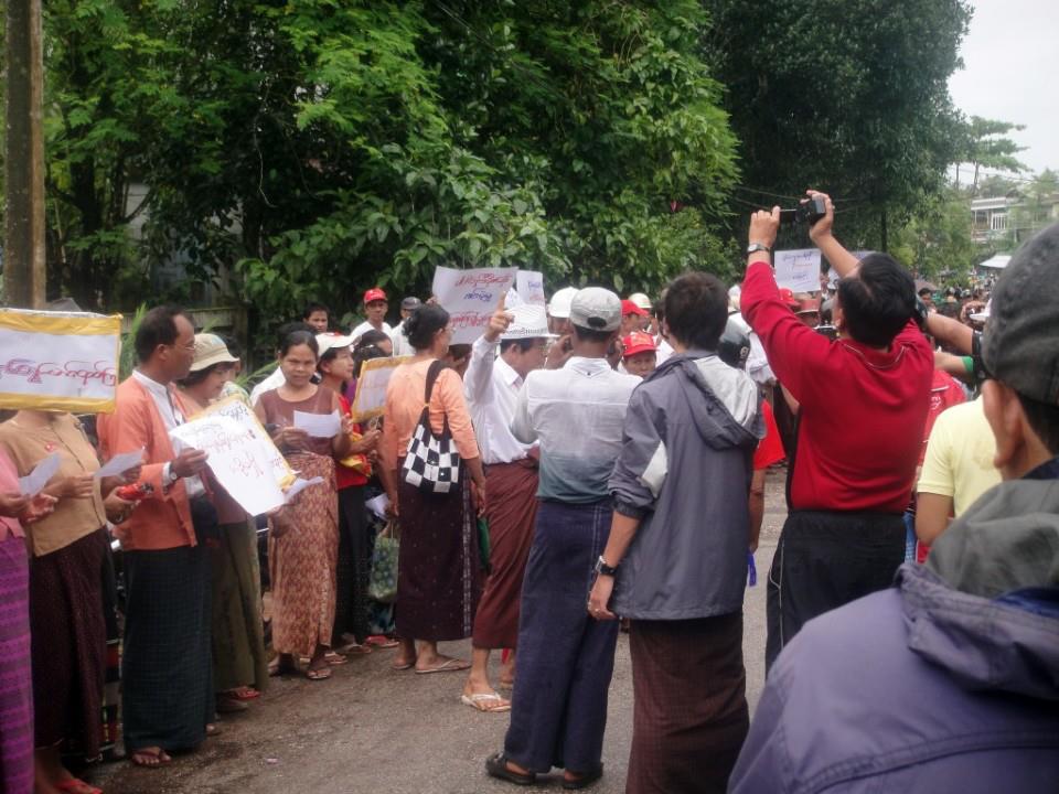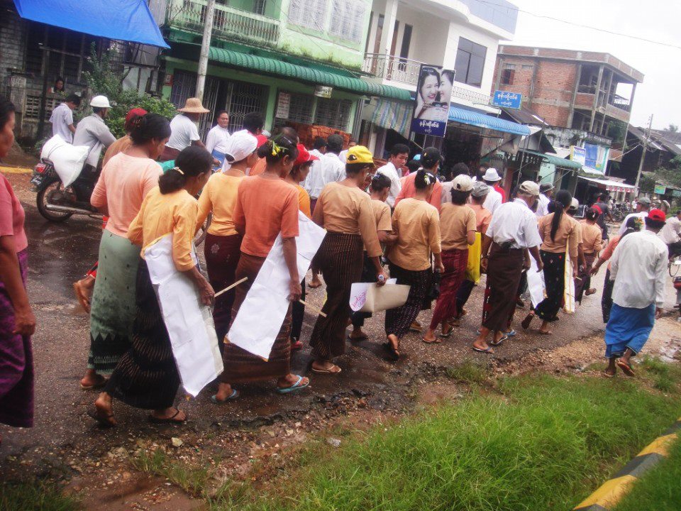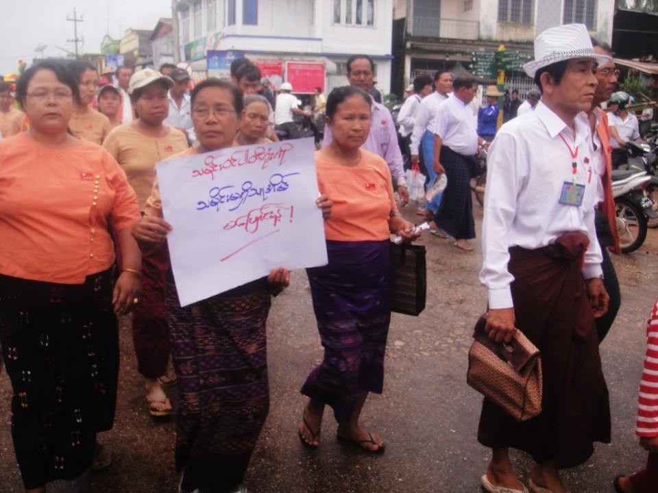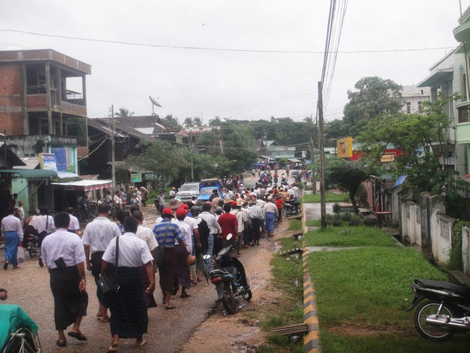 ျမိဳ႕နယ္ရံုးေျပာင္းေရႊ႔မည့္ အစီအစဥ္ကုိ မေက်နပ္ ဟု ဆုိကာ ဆႏၵထုတ္ေဖာ္သည့္အေနျဖင့္ ျငိမ္းခ်မ္းစြာ စီတန္းလွည့္