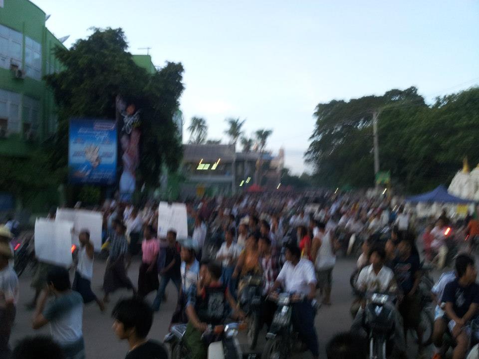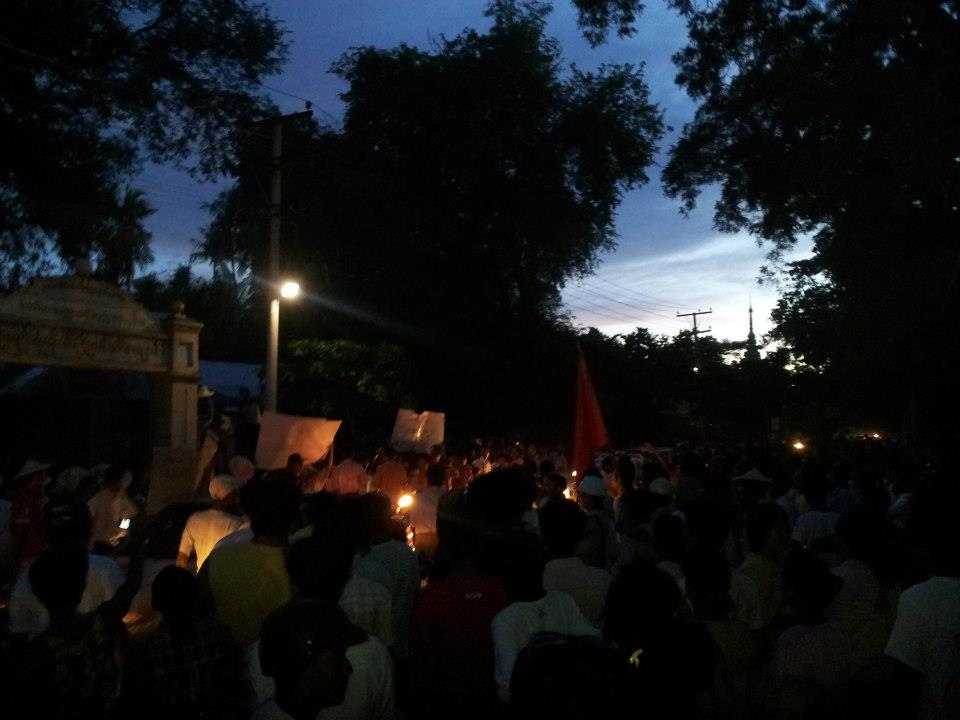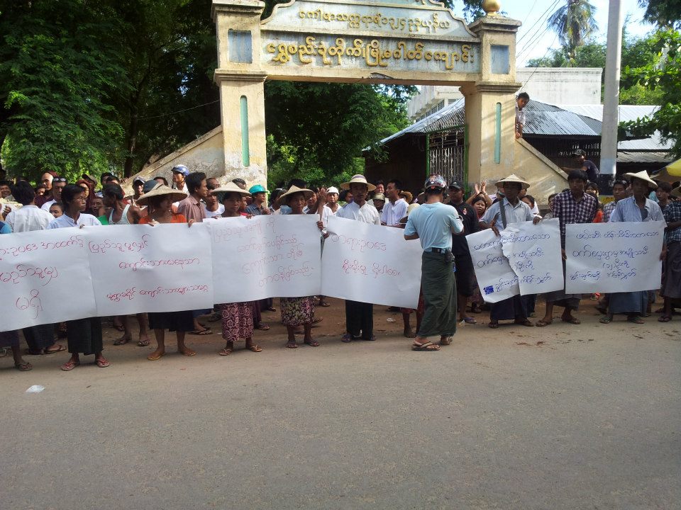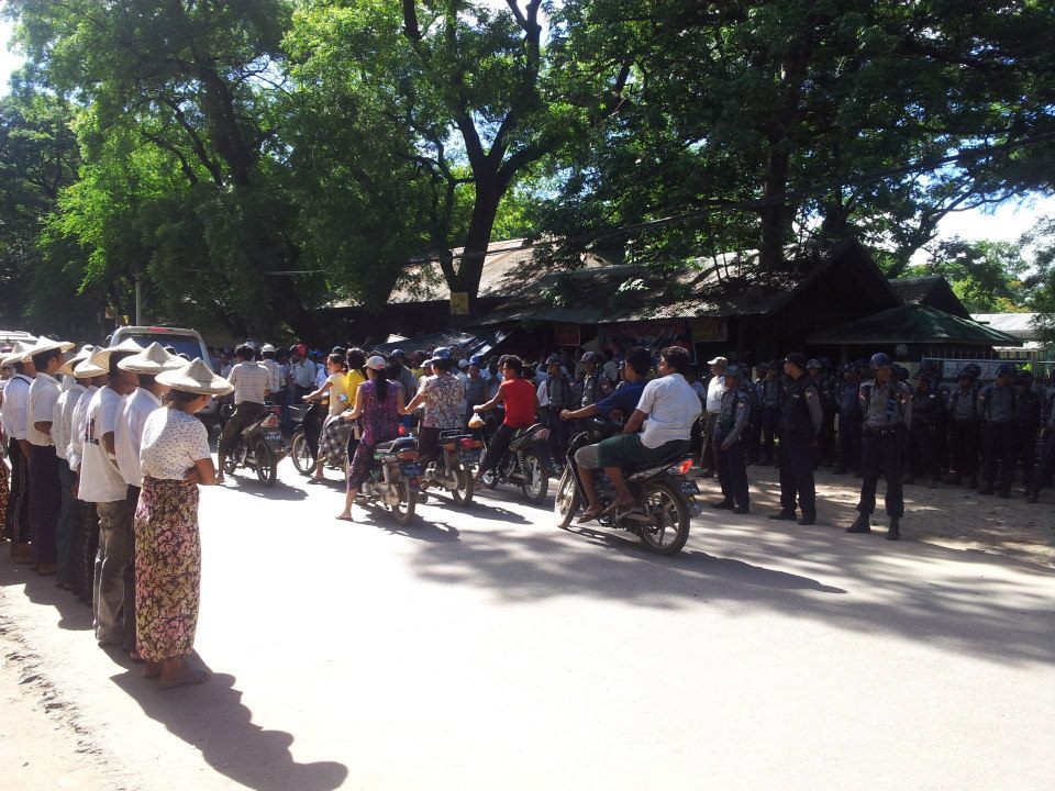 ျမစ္ ကို ေက်ာ္ ျဖတ္ ၍ မံုရြာ ၿမိဳ ့ ရွိ ဆႏၵျပ သူ မ်ား ႏွင့္ ပူးေပါင္း ရန္ လာသည့္ ရြာသား မ်ား