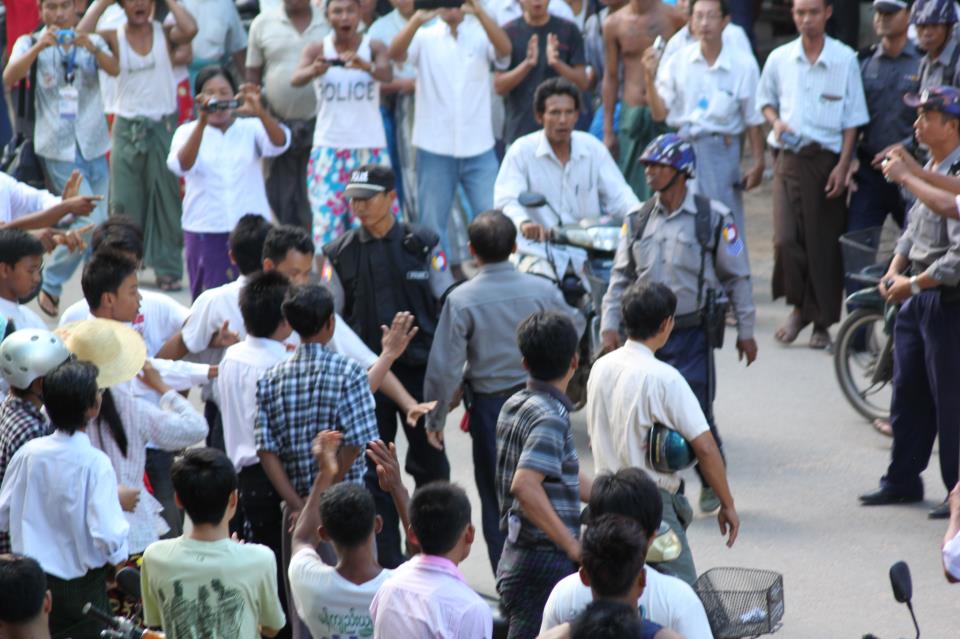၁ ရဲစခန္း ေရွ ့ တြင္ ၎ ၊ ၿမိဳ ့ တြင္း ဥ္ တန္းစီ လွည့္ လည္ ၿပီ ၎ ဖမ္းဆီးထား သည့္ အမ်ိဳး