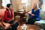 အေဆာက္အဦ တြင္ အေမရိကန္ ႏိုင္ငံျခား ေရး ၀န္ႀကီး ဟီလာရီ ကလင္တန္ ေတြ ့ ဆံုေဆြးေႏြး ခဲ့