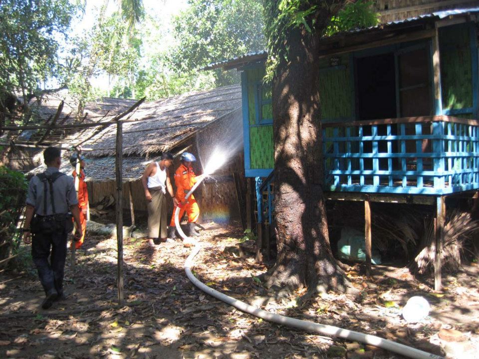 ဗလီ စတင္ မီးေလာင္ ၿပီး ေနာက္ စစ္ေတြ ၿမိဳ ့မွ မီးသတ္ တပ္ ဖြဲ ့ ၀င္မ်ား က အခ်ိန္ မွီ လာေရာက္