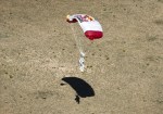 ေျမျပင္ ေရာက္ခါ နီး မိုင္၀က္ အလို ေလာက္မွ ေလထီး ဖြင့္ ၿပီး ေျမျပင္ ေပၚ ဆင္း သက္ ခဲ့တဲ့