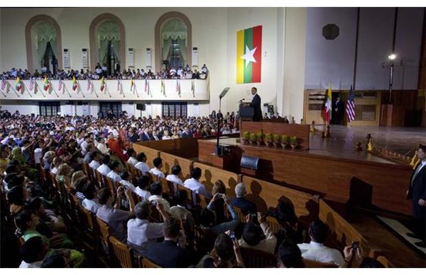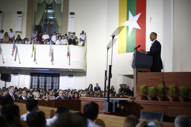 ၁၉ ႏုိ၀င္ဘာ ၂၀၁၂ တနလၤာေန႔က ရန္ကုန္တကၠသုိလ္တြင္ ေျပာၾကားခဲ့သည့္ သမၼတအိုဘားမား၏ မိန္႔ခြန္း ေကာက္ႏုတ္ခ်က္မ်ား (အိမ္ျဖဴေတာ္သတင္းဌာနမွ ထုတ္ျပန္သည္)။