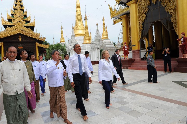 ဘား မား ၊ ႏိုင္ငံ ျခား ေရး ၀န္ႀကီး ဟီလာ ရီ ကလင္ တန္ ႏွင့္ အဖြဲ ့သည္