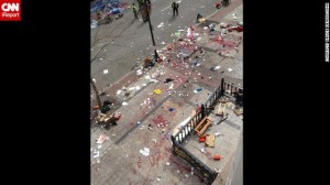 Image #: 21995127 BOSTON, MA – APRIL 15: Policemen inspect the blast site after the explosions occurred at the finishing line of the Boston Marathon on April 15, 2013 in Boston, Massachusetts. A series of explosions was reported near the finish line at the Boston Marathon on Monday, leaving two people dead and at least two dozen injured, according to the Boston Police Department. The explosions happened at about 2:45 p.m., more than two hours after the first of the race’s nearly 27,000 runners had crossed the finish line. Bruce Mendelsohn/Barcroft Media /Landov