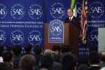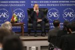ထို ့ ေနာက္ ဦးသိန္းစိန္ သည္ ဂၽြန္ ေဟာ့ကင္း တကၠ သိုလ္ တြင္ မိန္ ့ခြန္း ေဟာ ေျပာခဲ့သည္။
