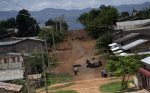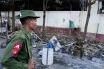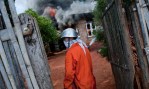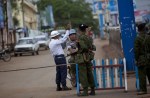 လံုၿခံဳေရး တပ္ ဖြဲ ့ ၀င္ မ်ား က ေစာင့္ ၾကပ္ ေပး ေနသည္။ ၿမိဳ ့ခံ တစ္ဦး က