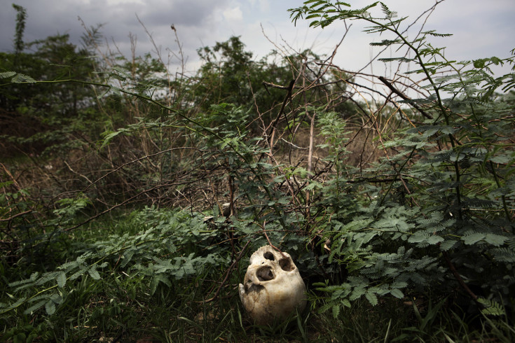 A skull lies on the ground near a Buddhist graveyard that appears to have been recently desecrated in Meikhtila, Myanmar (Burma) on May 23, 2013. In the four days of ethnic violence starting on March 21st, 2013 over 43 people were killed in Meikhtila and nearly 13,000 people, mostly Muslims, were driven from their homes and businesses.