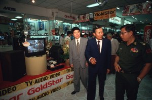 BURMA, YANGON, RANGOON, MYANMAR – 1994/01/06: Lieutenant-General Tun Kyi, Burma’s Minister of Commerce is the guest of honour at the opening of a GoldStar electronic goods store in a department store in Rangoon.. (Photo by Peter Charlesworth/LightRocket via Getty Images)