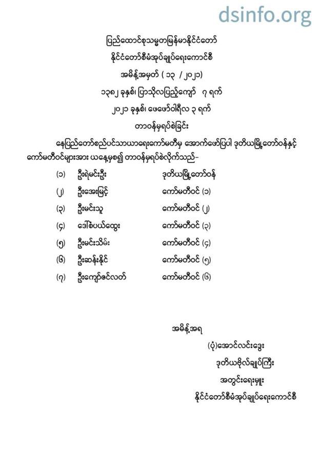 သမၼတဦးဝင္းျမင့္ နဲ့ နိုင္ငံေတာ္အတိုင္ပင္ခံ ေ ဒါ္ ေ အာင္ဆန္းစုျကည္ တို ့ ကို အာဏာသိမ္း စစ္ေ ကာင္စီက ခ်ုပ္ ရက္ ရမန္ ယူျပီး တရား စြဲဆိုထားပါ တယ္။