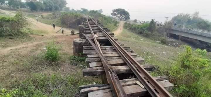 မိုင်းခွဲ တိုက်ခိုက် ခံရမှု ကြောင့် သံကူ ကွန်ကရစ်၊ သံလမ်း နှင့် အင်္ဂတေ ဇလီဖား တုံးများ ပျက်စီး သွားသည် ဒေသခံများ တင်သည့် ဗီဒီယို များမှ တစ်ဆင့် FNG http://www.the-fng.com မှ တွေ့ရသည်။